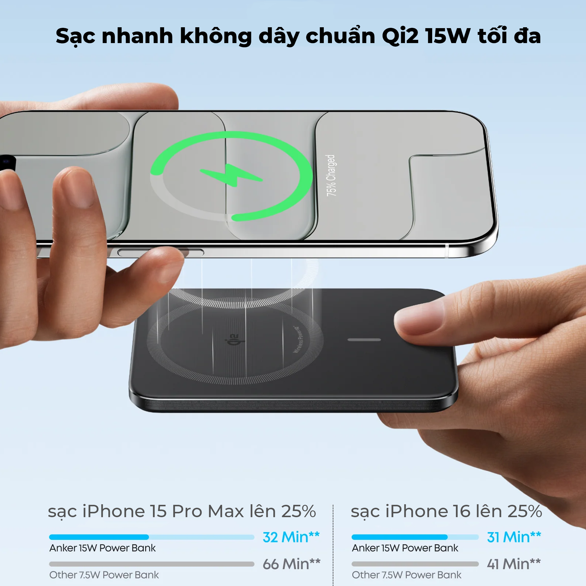 Sạc nhanh gấp 2 lần so với các pin dự phòng không dây 7.5W thông thường.